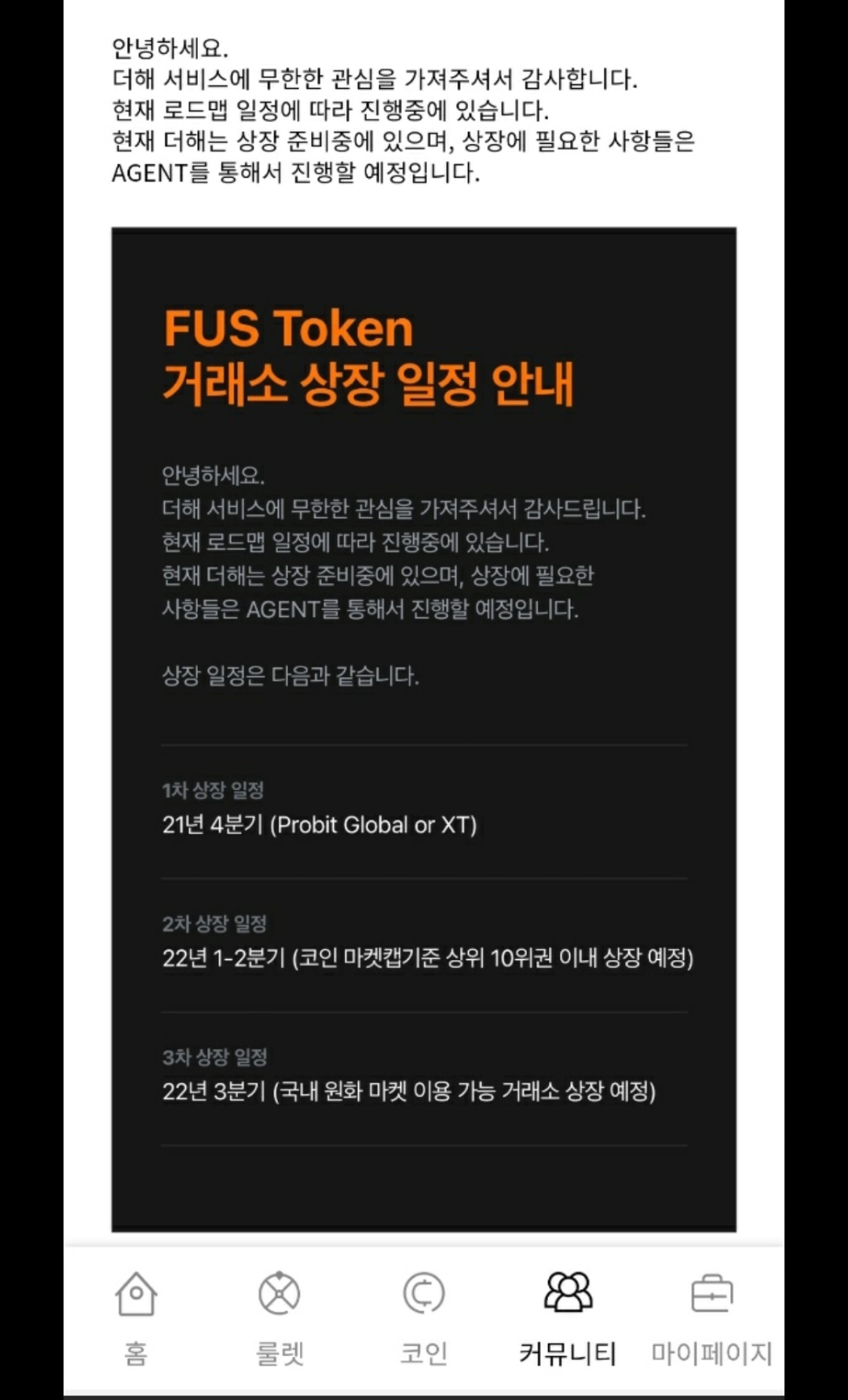 • FUS 12월 상장 공지 에어드랍 이벤트